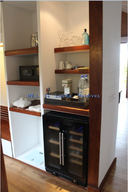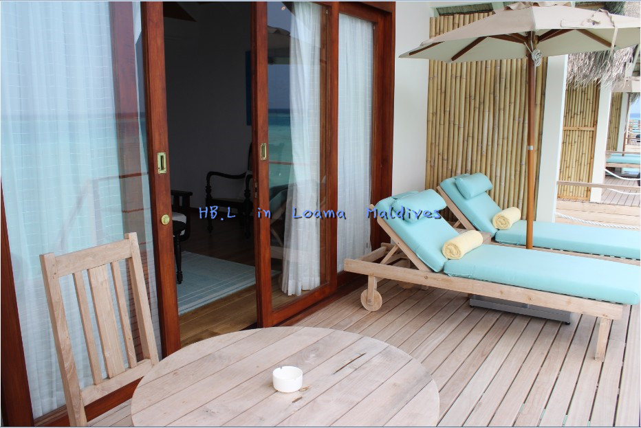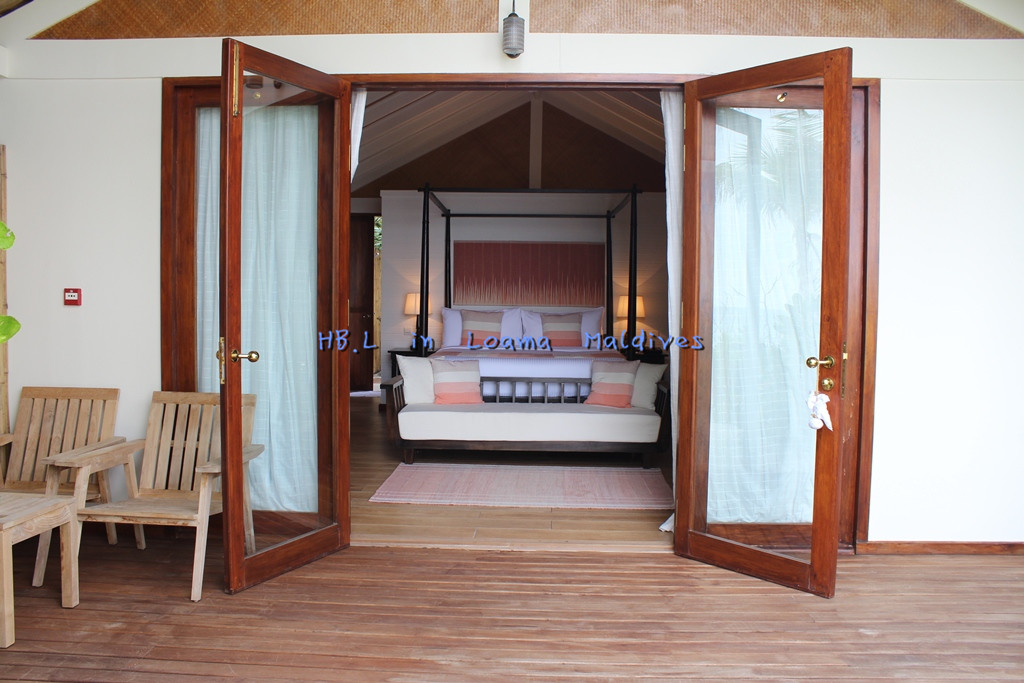门是用钥匙开关的,这个是挺传统的,比起其他豪华岛与来说,而且有点不便就是下海浮潜或者游泳的时候不知道要把钥匙放在哪里好。