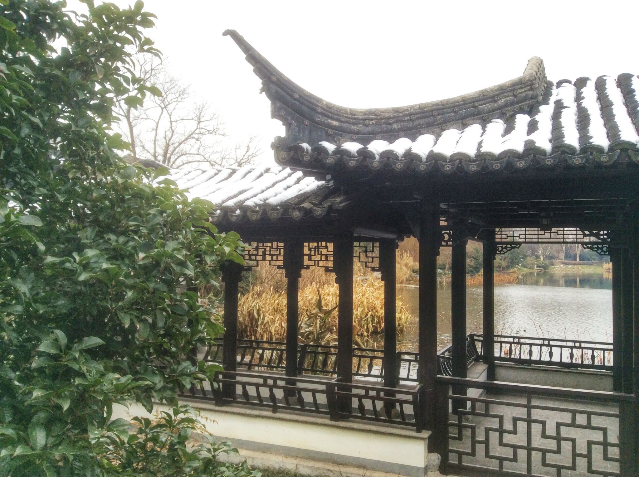 南京前几天刚刚下过雪 还木有化 积雪在绿油油的树木草地上 格外美