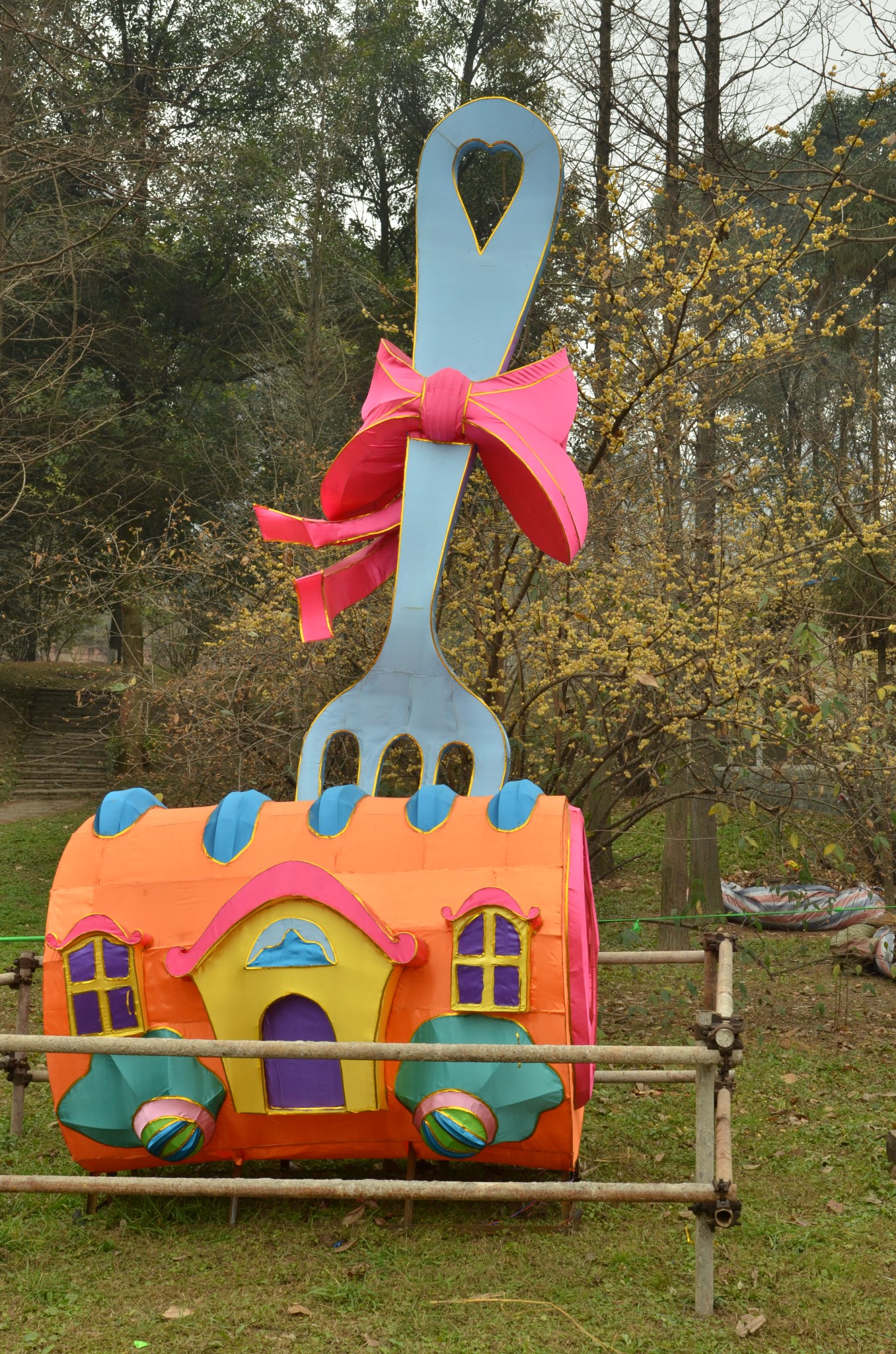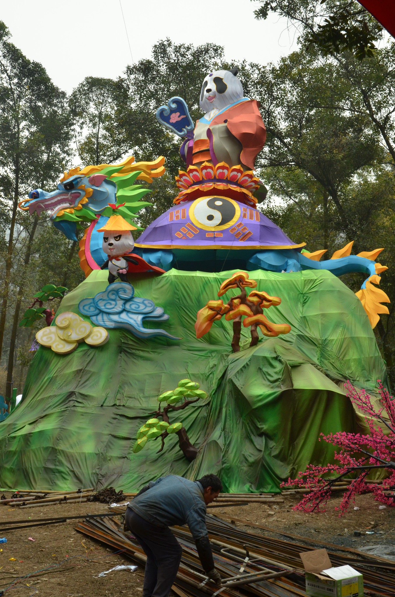 成都灯会历史悠久,过年逛灯会已经成为了人们最传统的习俗之一,更是市民们不可割舍的春节记忆。2015年成都熊猫灯会即将亮灯,在塔子山公园举办。赶在没有亮灯前,公园人少,去看看白天的那些灯。工人们正在制作中。。。还有公园的海棠也有开放。