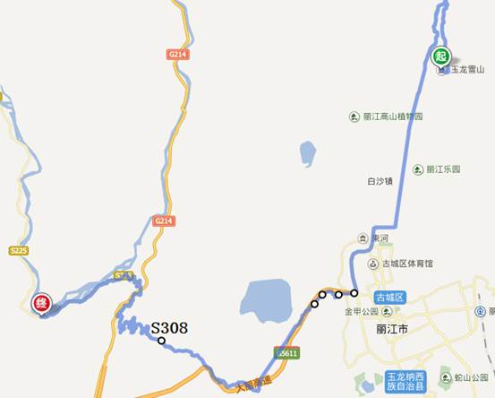 长江第一湾(/poi/3004.html)位于G214往西约11km处,我们选择了走S308上到G214,然后左拐上S225,耗时1小时多一点。S308因为是条盘山公路,很耗费时间,走大丽高速会快很多,但景致不如S308。
