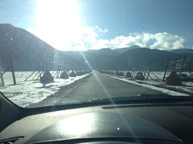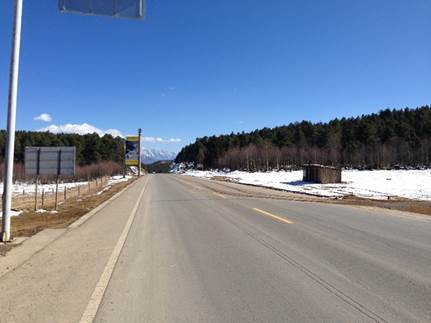 帕纳海景区门口,草原基本上都已被白雪覆盖,一个游客都没有,却依然收费60元,于是我们决定在门口拍拍照,继续往前去石卡雪山(/poi/17982.html)景区。