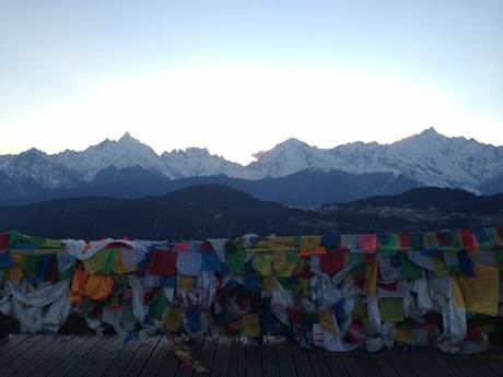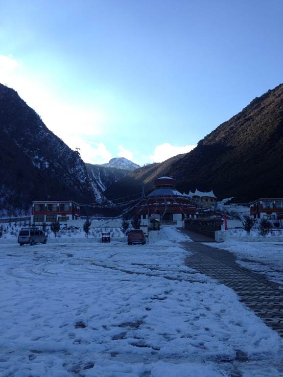 路过德钦县继续向前开10km左右就是飞来寺景区了,我们选择了住在飞来寺旁的缅茨姆商务酒店,这样第二天一早就能看到日出了。