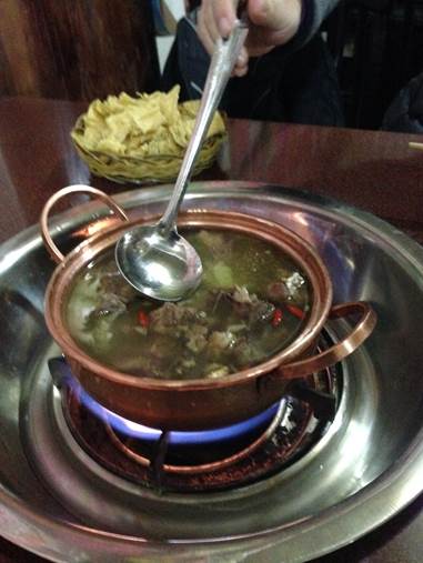好不容易找到一家开门的店,尝了尝牦牛火锅,味道真不错!