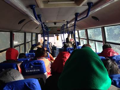 淡季一两辆大巴就能装下所有的游客了吧,大家都穿着厚厚的大衣。由于海拔已经接近3500m,不时地有人在吸氧气罐中的氧气。