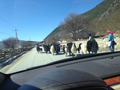 回香格里拉的路上,碰到牛群,只能耐心等待。