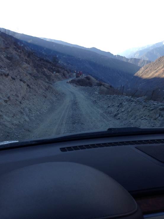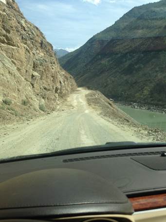 快到中路了,德维线由于再修隧道还未通车,不得不沿岔路口下到江边小镇里,一路砂石路下坡,蹭底好几次,前保险杠也撞了,真不适合小轿车开,前面的皮卡开下去毫无压力。