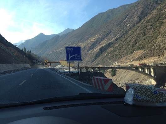 到达地图中的“1”,道路向西拐向怒江,开始翻越山脉,进入一段无人区