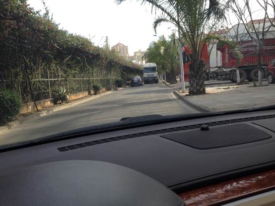 环海西路穿过村庄时路很窄,遇到大车就只能慢慢地跟在后面