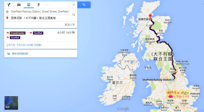 火车票在 National Rail上定的从Sheffield—Inverness的往返Offpeak的车票,使用了Two Together Card,往返票价为197胖子,(还是小贵,不过全程只要是经过这两地的火车都可以乘坐,还是很方便的,具体购买及查询方法请参见娜仔另一篇游记,链接如下://www.achim-lelle.com/i/3263495.html娜样不列颠穷游英伦之—初识伦敦08Nov2014—09Nov2014附超详细火车伦敦地铁搭乘说明)。