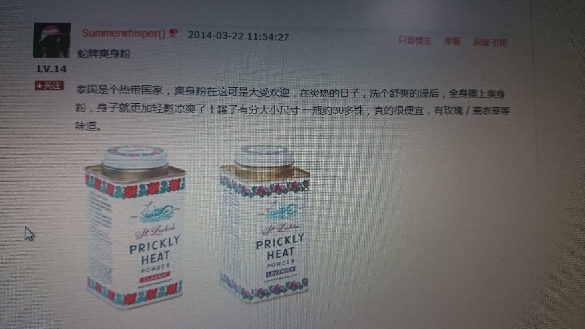 这个痱子粉味道很不错,最后走的时候在BIG C买了一桶,真的是一桶很大,大概不到10元人民币,夏天给儿子用!