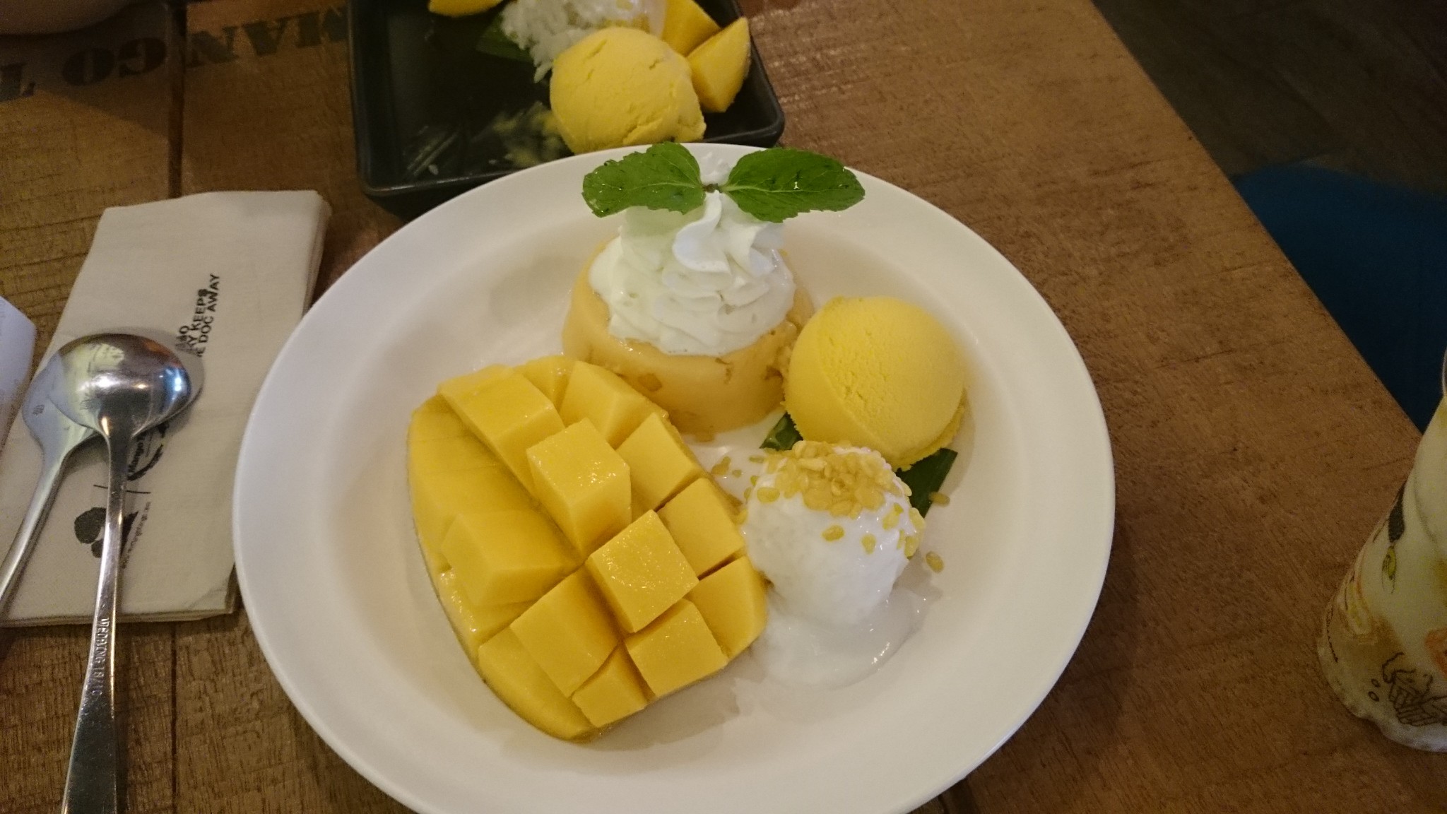 店主送了一张泰国明信片、一张泰国地图(包括曼谷、清迈、普吉岛等主要旅游地)、还有一张温馨提示,有意思的是上面印有一些泰国话翻译成拼音怎么说,比如你好(sa-wa-di-ka)、多少钱(na-ka-tao-lai),这个真的很有意思!