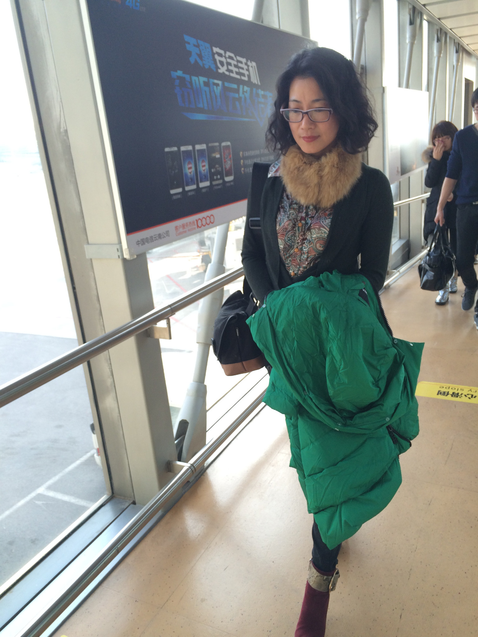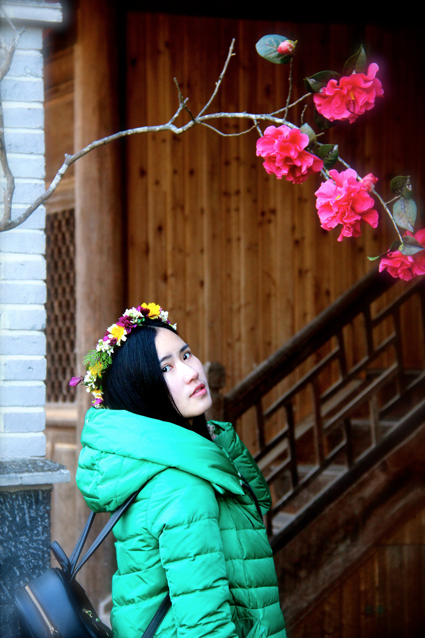 在机场遇到了同是台州前往云南的一对母女 鲜花映衬下更显江南女子之柔美