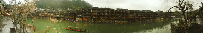 好不容易折腾到了凤凰,车站有客栈的人在等,说可以直接带你进古镇不用买票,只要你入住他们家的客栈。我们也想着可以撘免费的车到古镇就去看看客栈好喽,大不了不住。好在房间还可以临江靠近雪桥,价格也可以接受,我们也就住下来不想下雨天还拖着行李找房子。第二天再去入住连续两年被评为中国最美风情客栈的飘摇摆渡客栈。