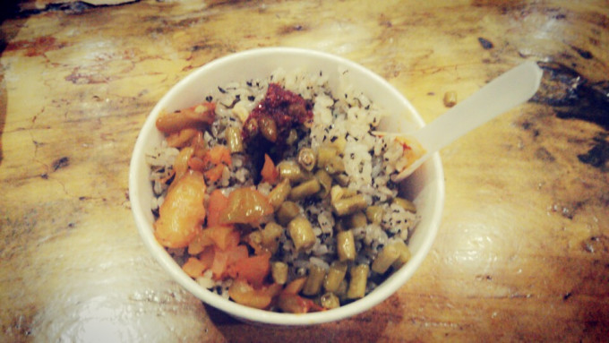攻略上有提到的阿兵社饭大王,与普通炒饭还是有点区别的,里面混合了糯米、野香蒿、辣肉,上面在撒上花生米和榨菜。饭略干,味道还行,就是榨菜有点偏咸。