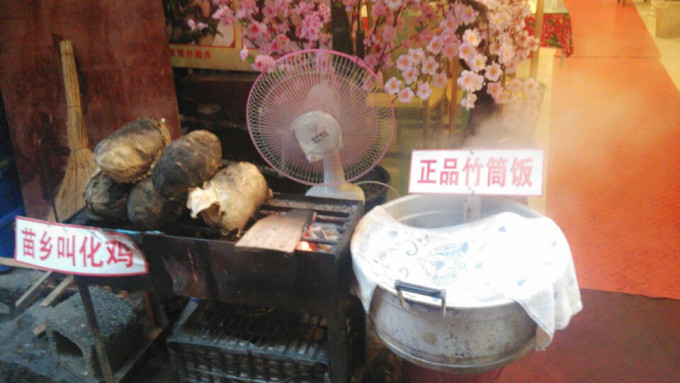 刚才那么一点点的小吃明显满足不了我们这俩个吃货,路过一家很有意思的小饭馆,被门口的叫花鸡和竹筒吸引住了,赶紧进去试试。