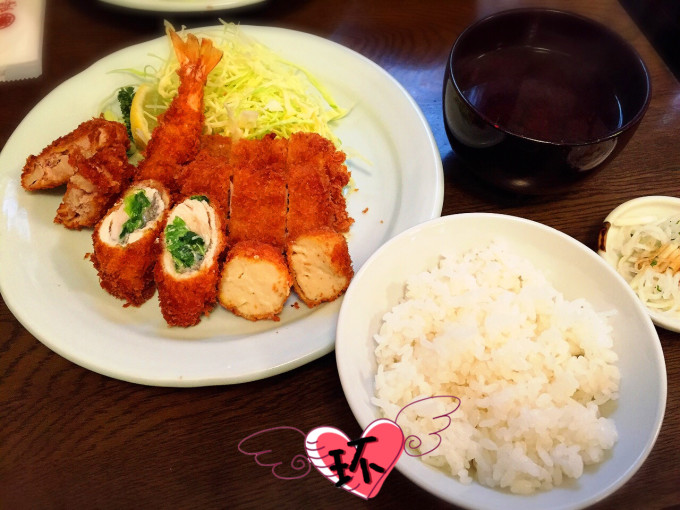 但是这有炸鸡炸虾炸猪排和炸芝士球的拼盘实在美味!