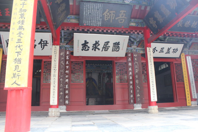 南阳卧龙岗据说魏晋时代就已经兴建。 和在成都武侯祠看到的一样,进门就有岳飞手书的诸葛亮前后《出师表》和《还我河山》。