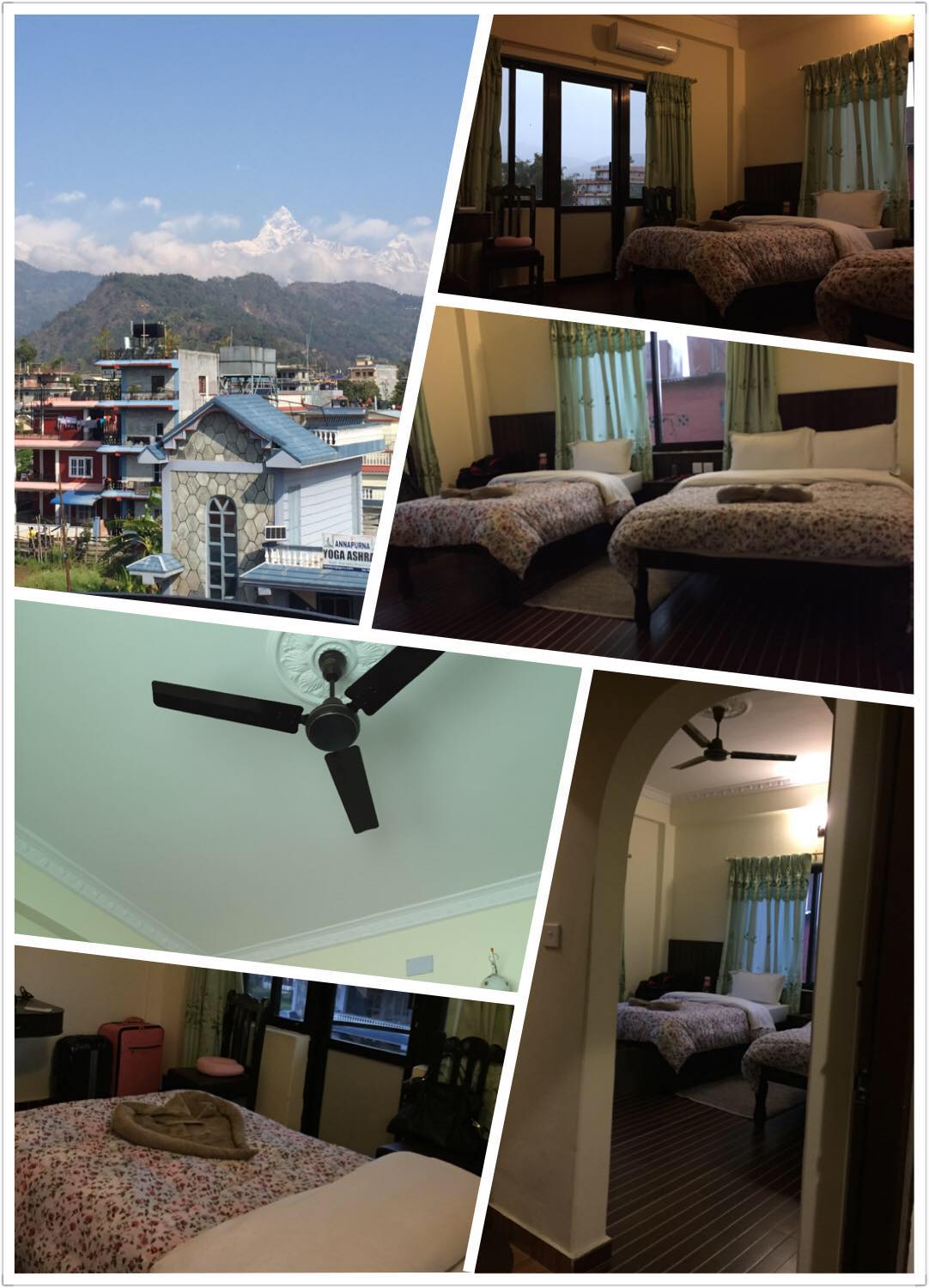特别是全新房间用品,我们订的这栋小洋楼的最好的房间,打开阳台门,看的就是喜马拉雅山的一条美丽山脉···