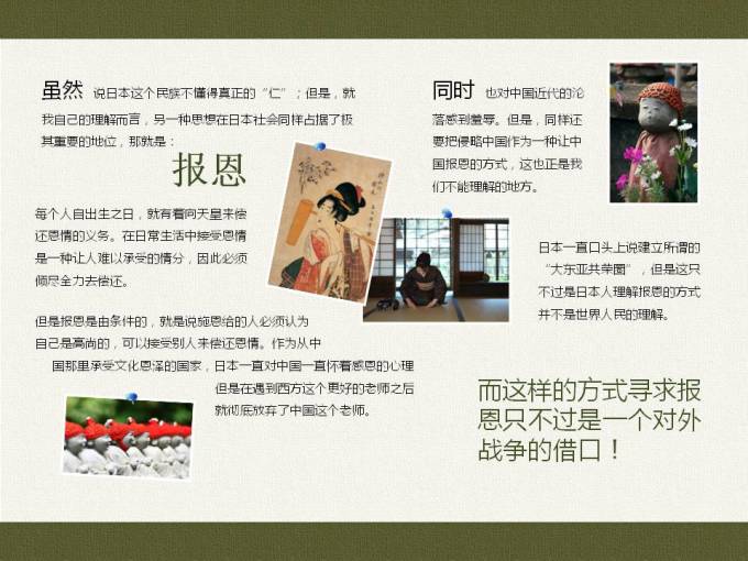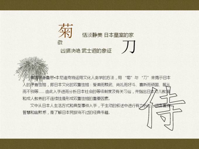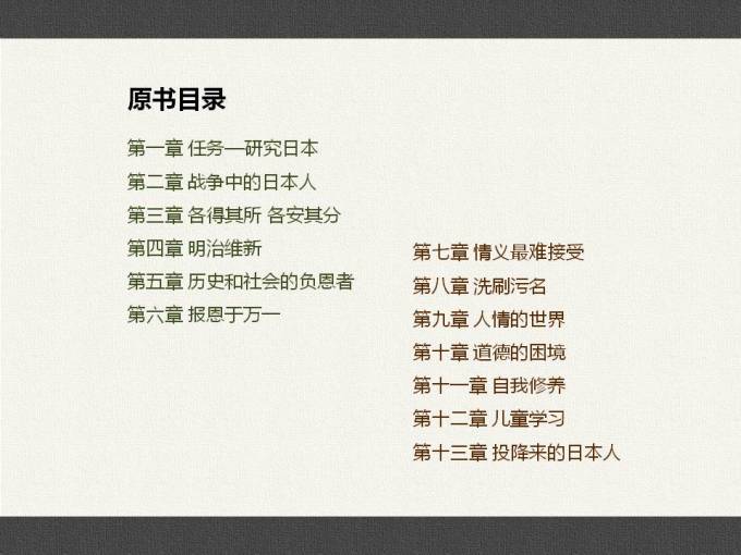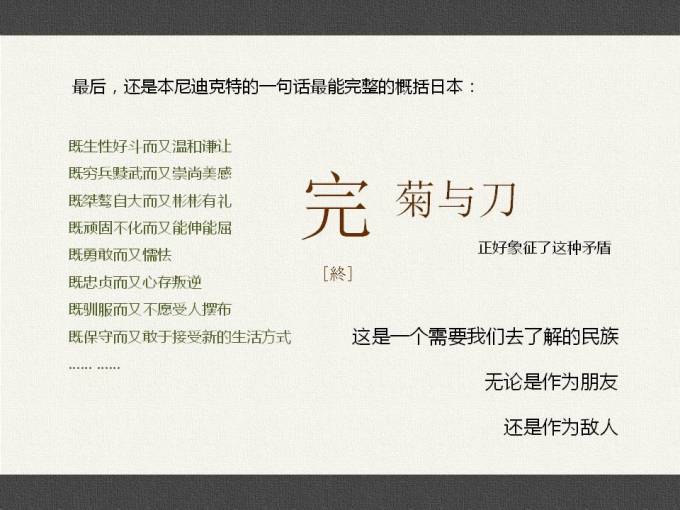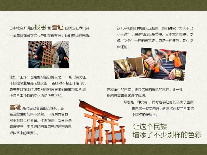 这是我看到描写日本这个民族最精彩的书之一~找到了一个ppt介绍这本书,介绍这个民族~跟大家分享,确实很值得我们思考