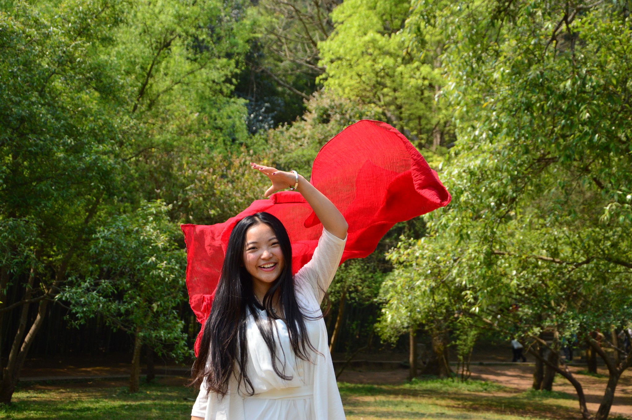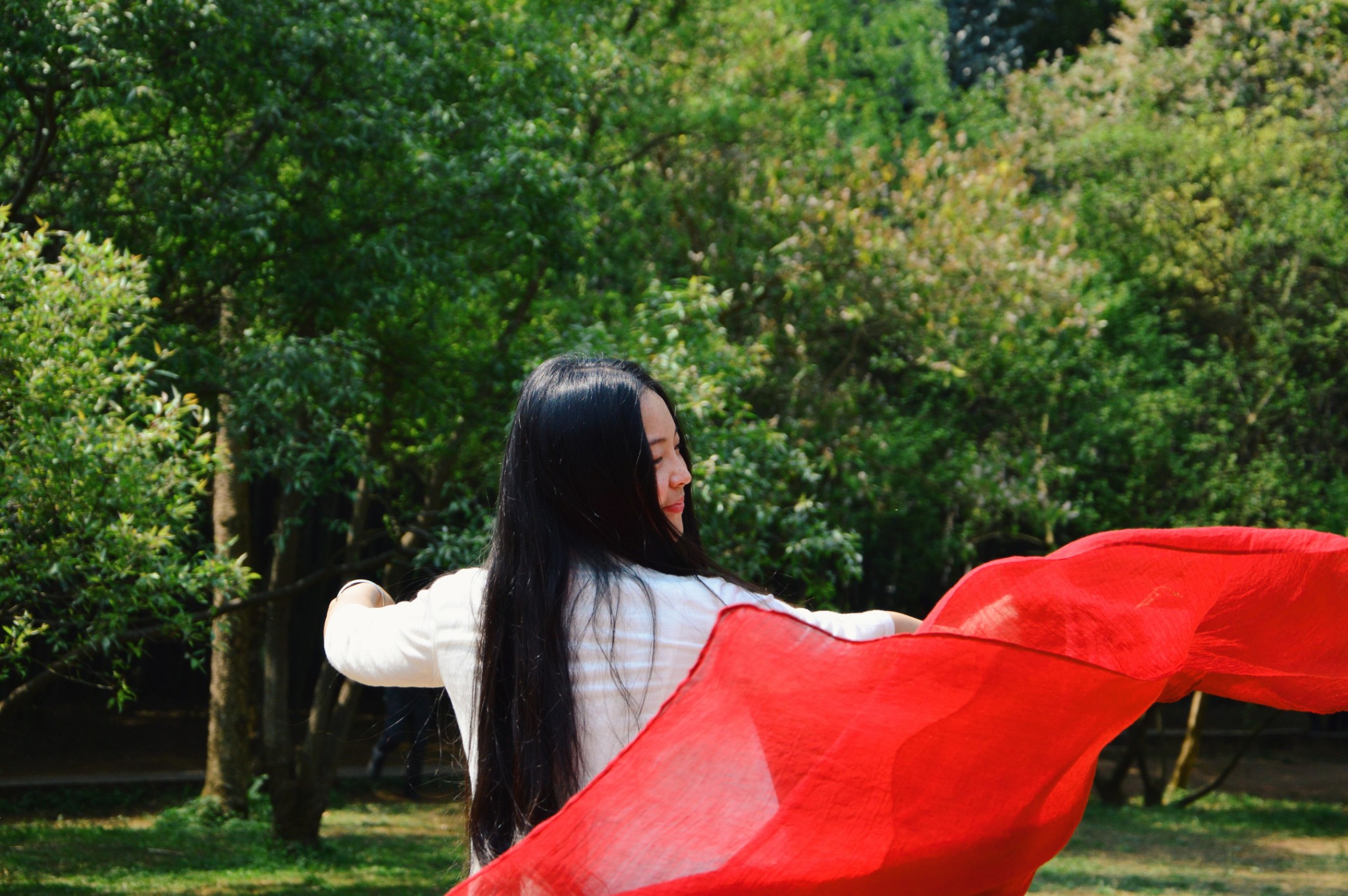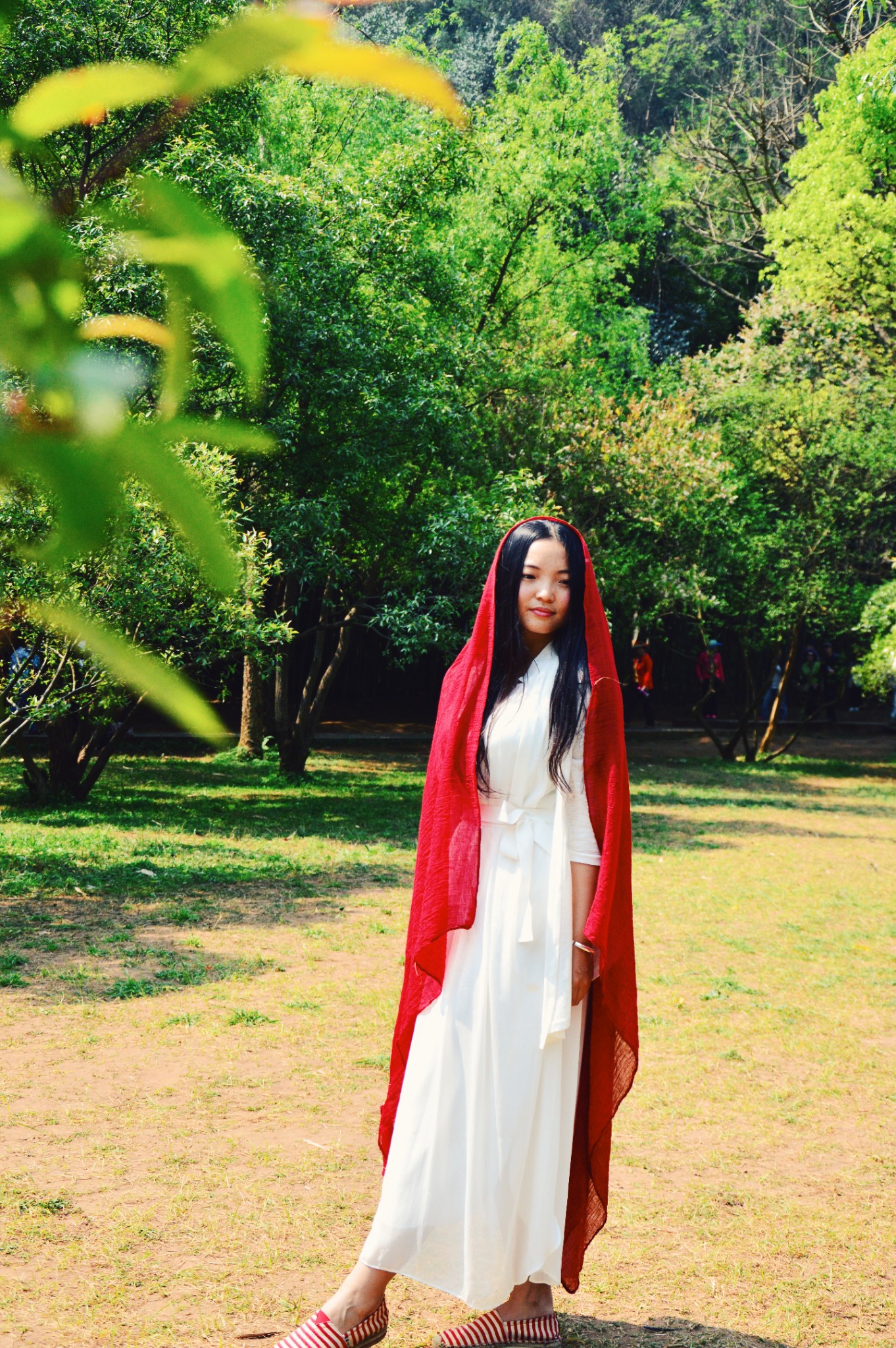 在溪水边午休,小树林里红白色彩搭配,好像也很艳丽,原谅我真的不瘦
