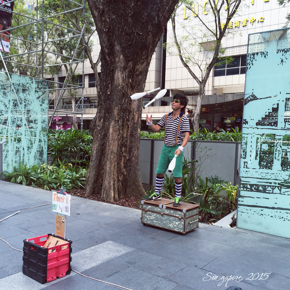 在新加坡卖艺的人都真的是有两把刷子~而且笑的挺灿烂~