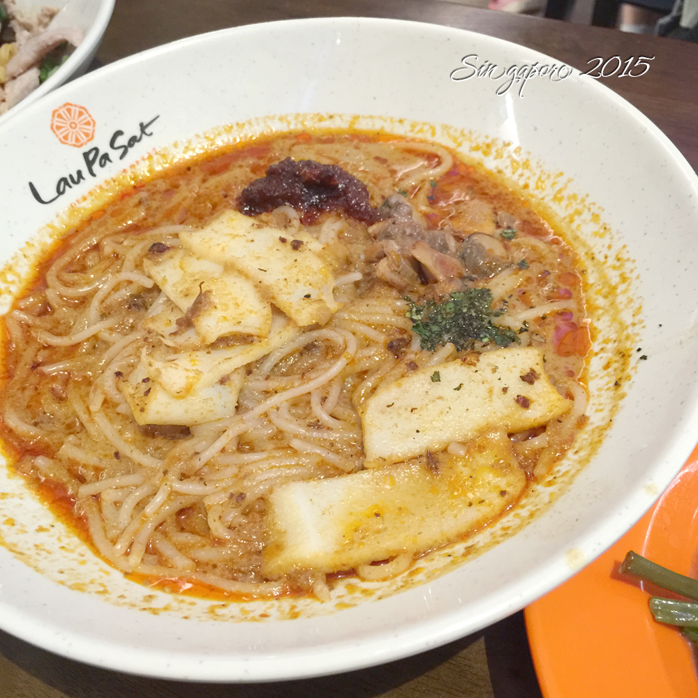 来新加坡必须吃的就是叻唦,点了就要马上吃,放久了汤都被粉吸没了,就像上图一样悲催。还有各种鱼丸粉面,不过我是重口味选手,还是更喜欢叻唦~