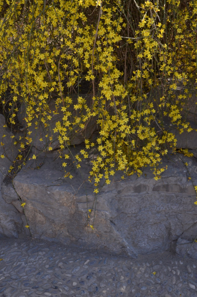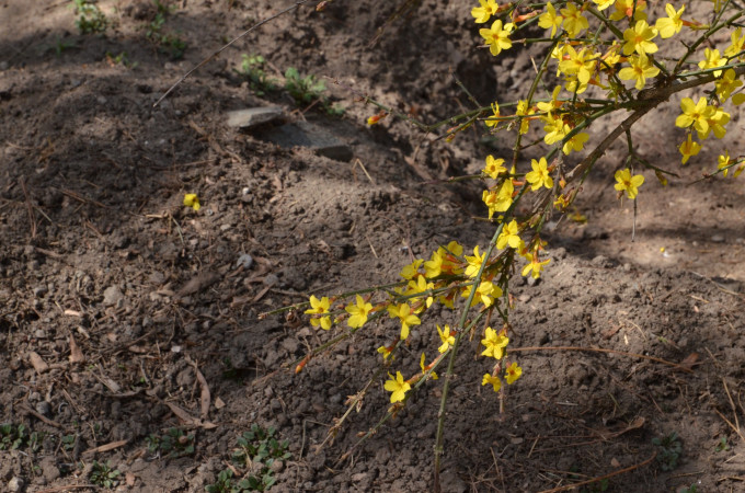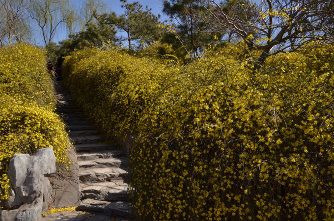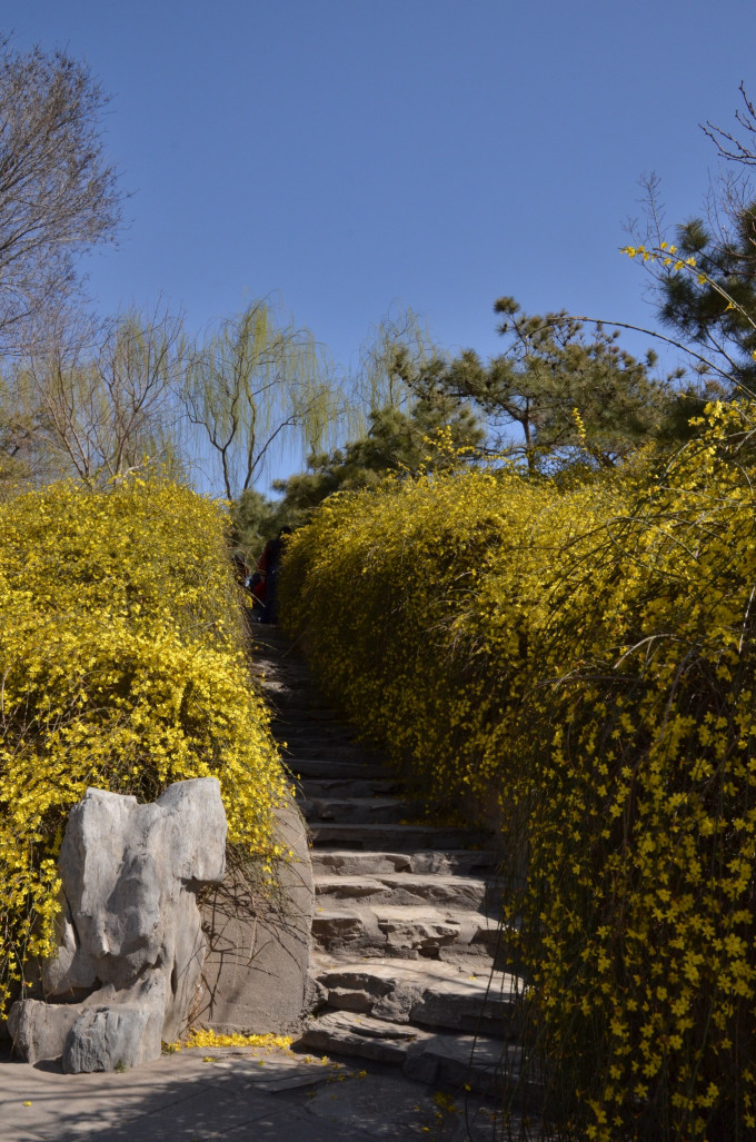 通往小山丘的小径,迎春花盛开