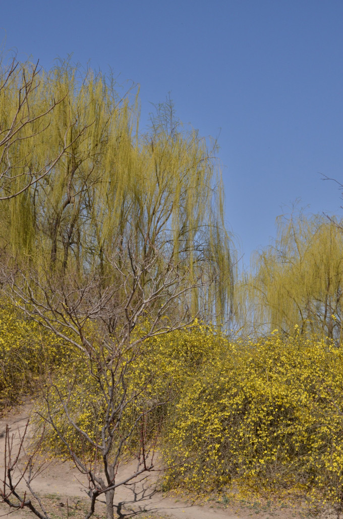 柳树、迎春花,美!