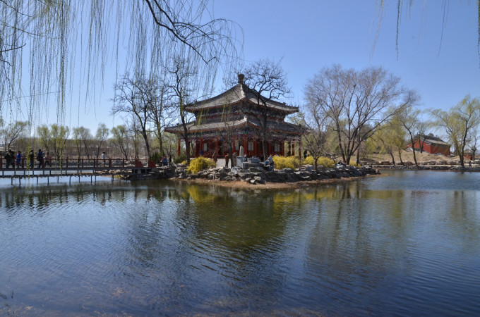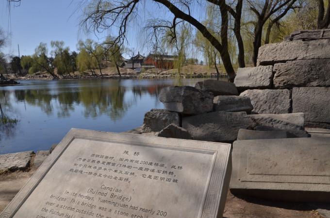 圆明园,位于北京市海淀区,是一组清代的大型皇家园林,由圆明园及其附园长春园和绮春园(后改称万春园)组成,统称为“圆明三园”。圆明园规模宏伟,运用了各种造园技巧,融汇了各式园林风格,是中国园林艺术史上的顶峰作品,有“万园之园”美称。原为清代一座大型皇家御苑,占地约5200亩。1860年,圆明园在第二次鸦片战争中被英法联军焚毁,现仅存遗址。