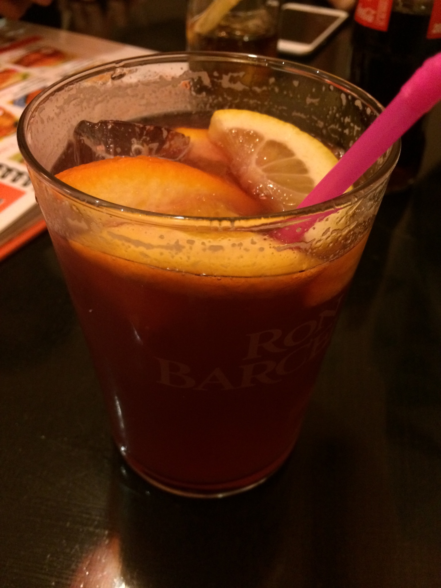 当地有个饮品很好玩,叫sangria,源于西班牙的wine punch(混合型酒精饮品),算是西班牙果酒,主要以葡萄酒做基酒,加于当地时令水果浸泡,再加入一些柠檬水或者白兰地勾兑而成,其实就是果酒饮料,味道很好玩,建议大家去当地店里时可以点一杯试试~~长下面这样