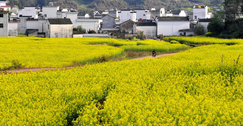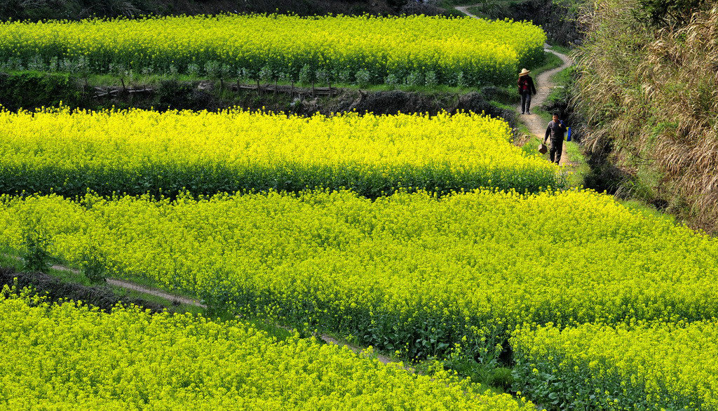 婺源被誉为“中国最美的乡村”,而春季则是婺源一年中最美的时节。油菜花盛开,田野一片金黄。余邵诗云:“油菜花开满地黄,丛间蝶舞蜜蜂忙;清风吹拂金波涌,飘溢醉人浓郁香”。油菜花开放,花粉中的花蜜,引来彩蝶和蜜蜂在花丛间飞舞,浓郁花香令人陶醉。