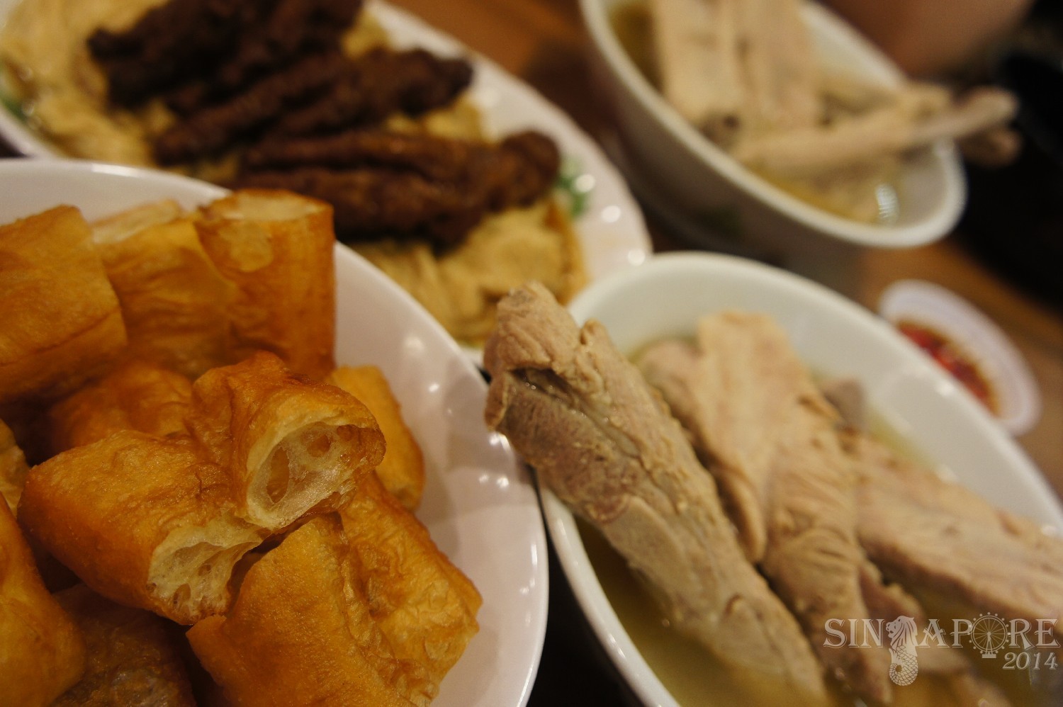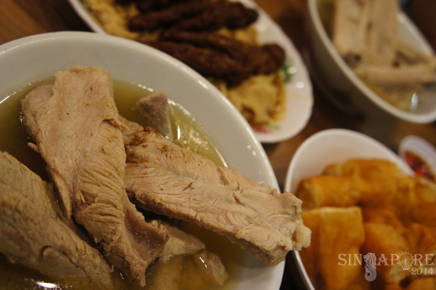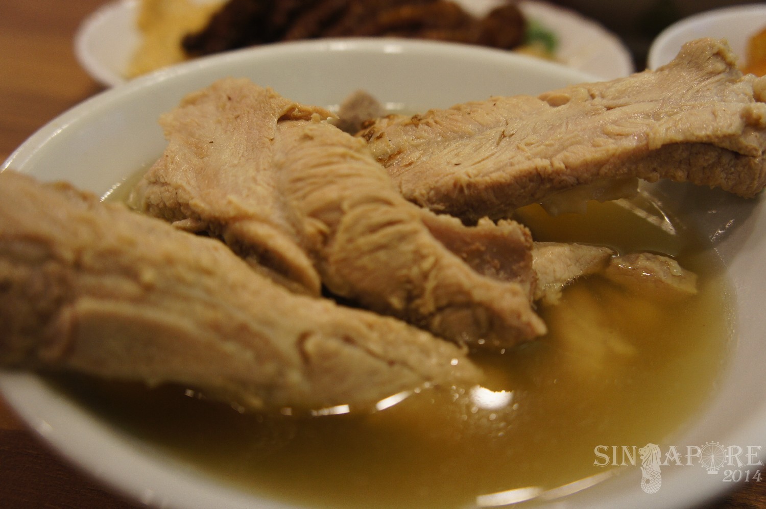 在酒店check in后立马杀到牛车水买之后几天的景点门票。票搞定之后,人也饿扁了,中午的飞机餐根本无法满足我们深不见底的小胃,看到唐城坊有松发肉骨茶,毫不犹豫吃之。2份肉骨茶配米饭,1份鸡爪,全部扫荡完。当地蘸排骨的酱油是酱油膏。一共35.2SGD,其中包括2.3SGD的税。