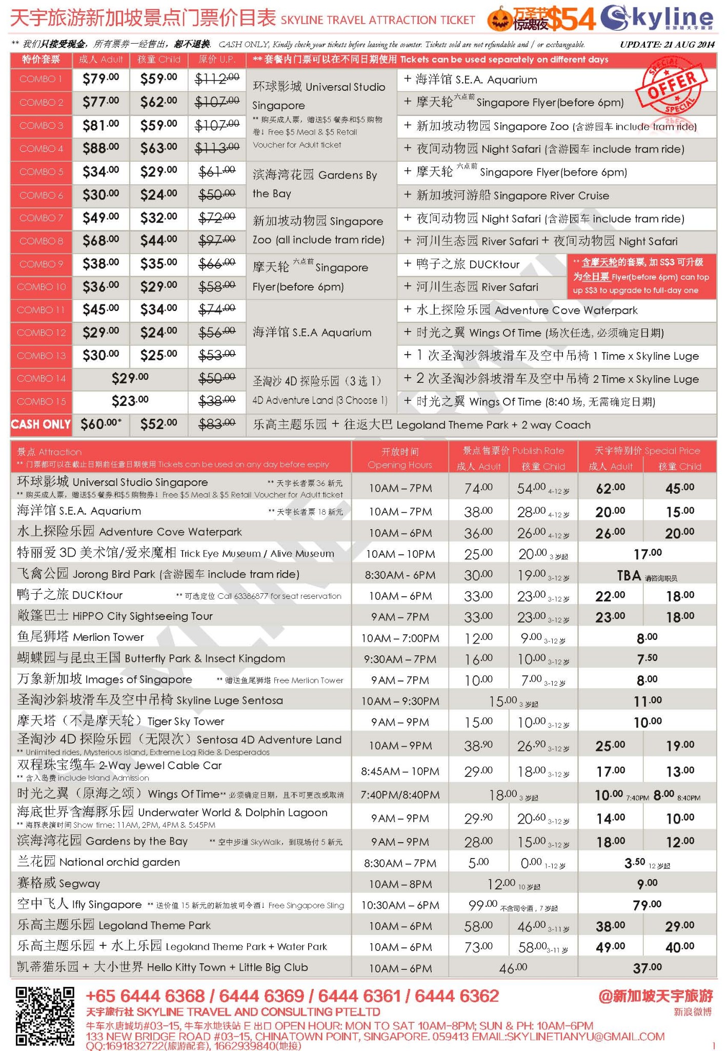 景点门票我在这里可以给各位即将去新加坡还么订票的xdjm说道说道。什么官网、什么淘宝,都没有去当地买便宜,看看价目表就知道。
