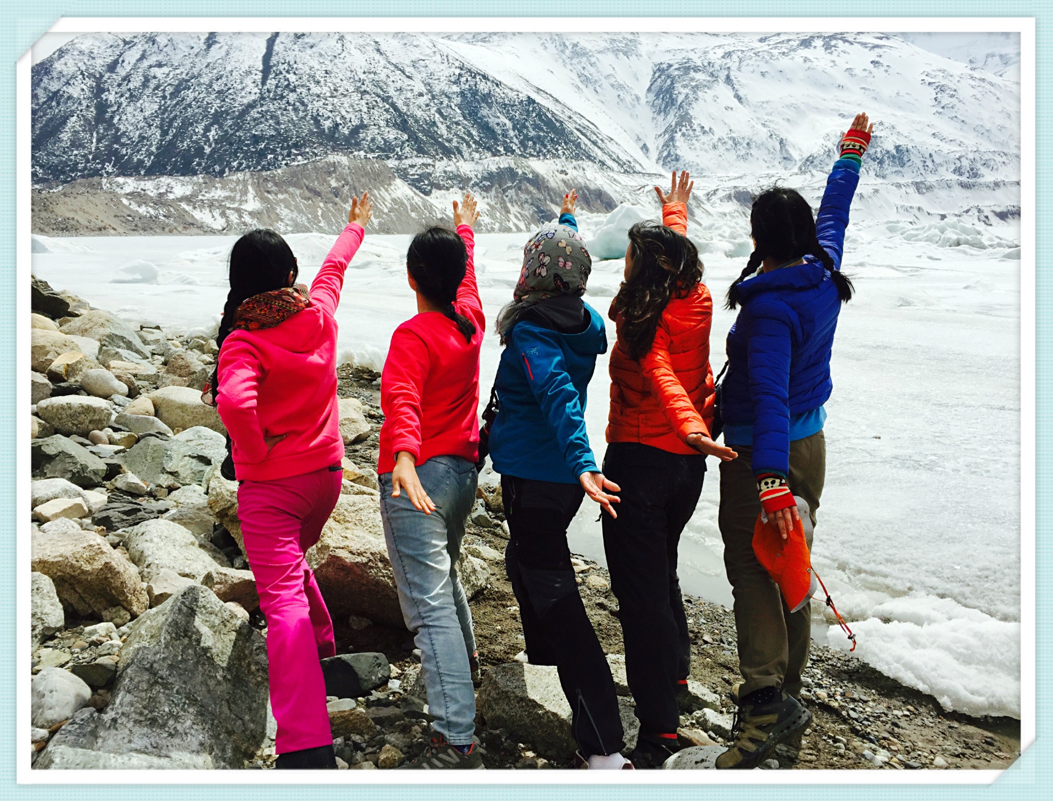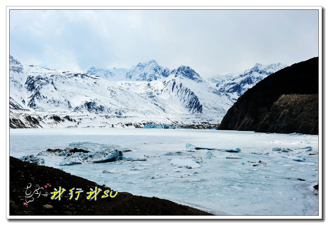 在冰蚀湖边玩耍的时候,远处雪山传来雪崩的轰隆声,不一会冰湖的冰层下就起了浪涌上岸边,大自然的神力特别令人感到渺小,同时心生敬畏。