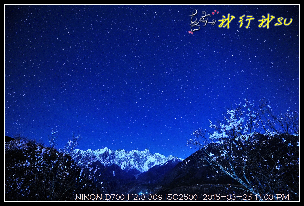 SU好不容易早上5点起来了,结果有云,墨脱方向有雷电,这张拍到远远在多雄拉雪山背后闪出雪山的轮廓,还是挺有趣的,星星就模糊了。