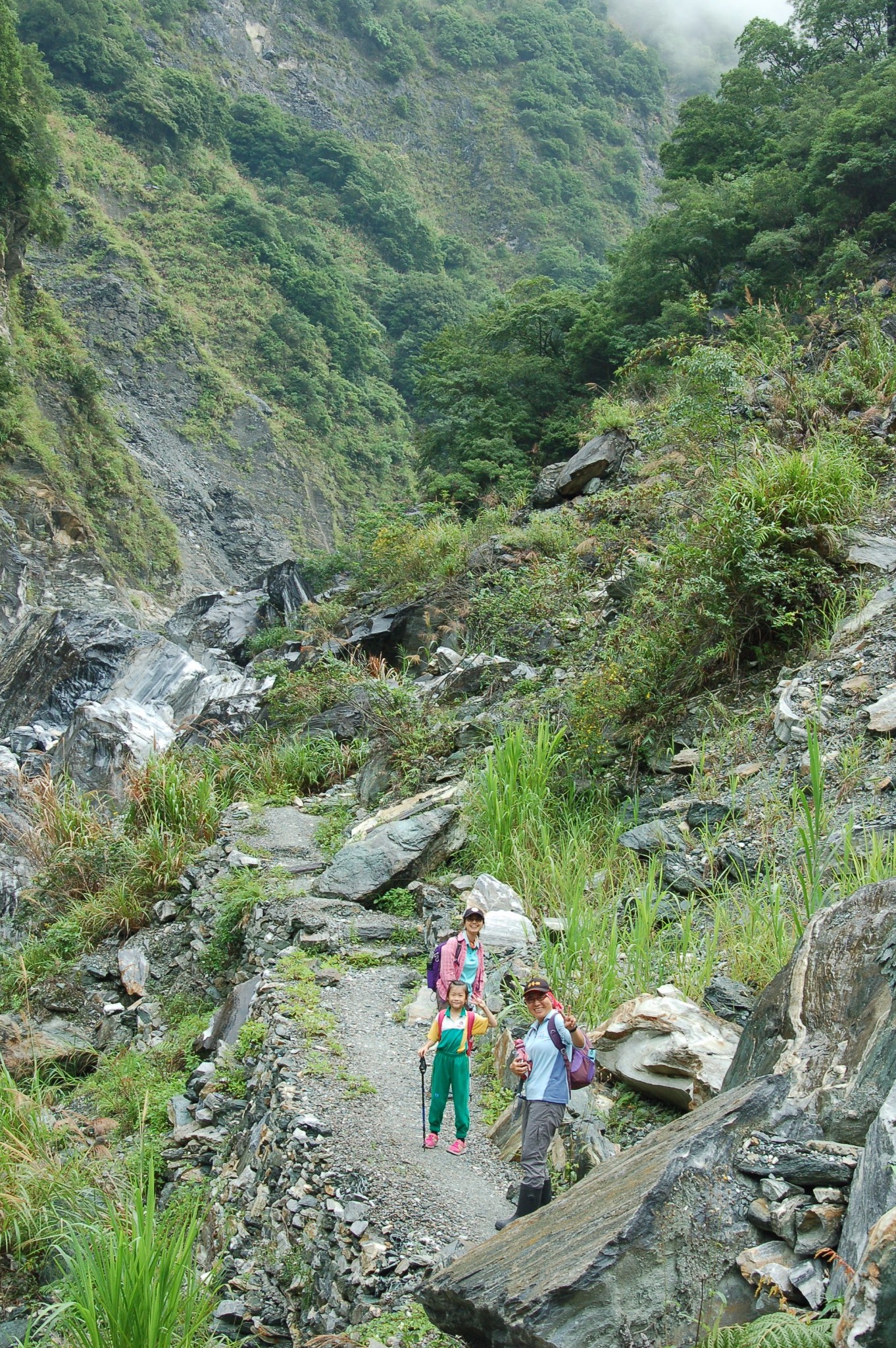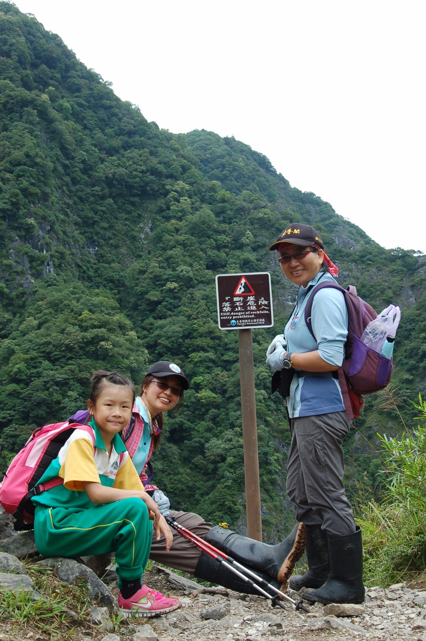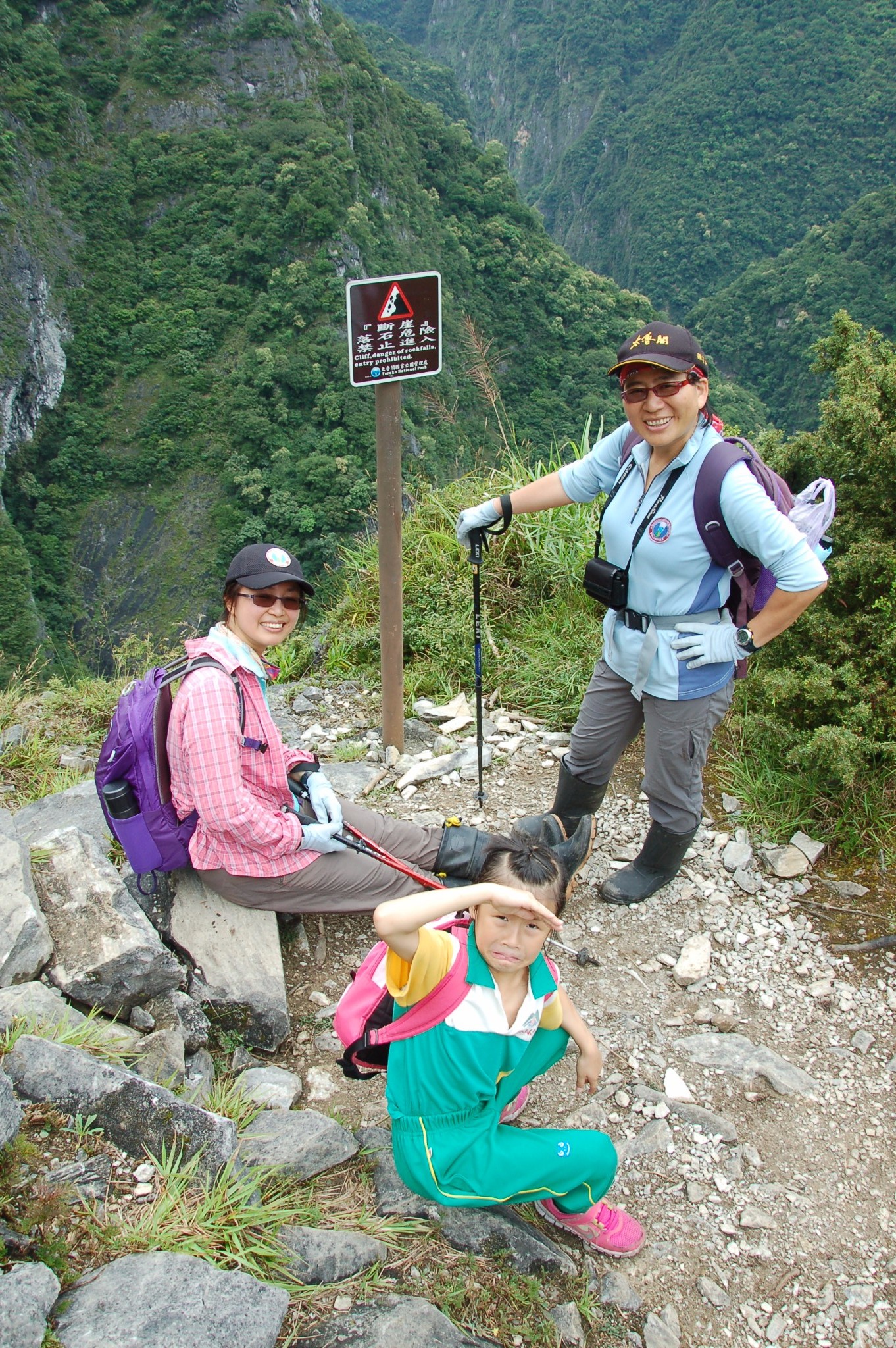 有同事相當熱愛戶外活動,除了平日參加馬拉松比賽外,在花蓮還去擔任太魯閣的巡山義工。2014年六月十四日,感謝同事的邀約,還有專業山友的照顧,讓七歲半的女兒燁燁順利提早完成了這次不同凡響的生命印記,全程十.三公里,費時七個小時。