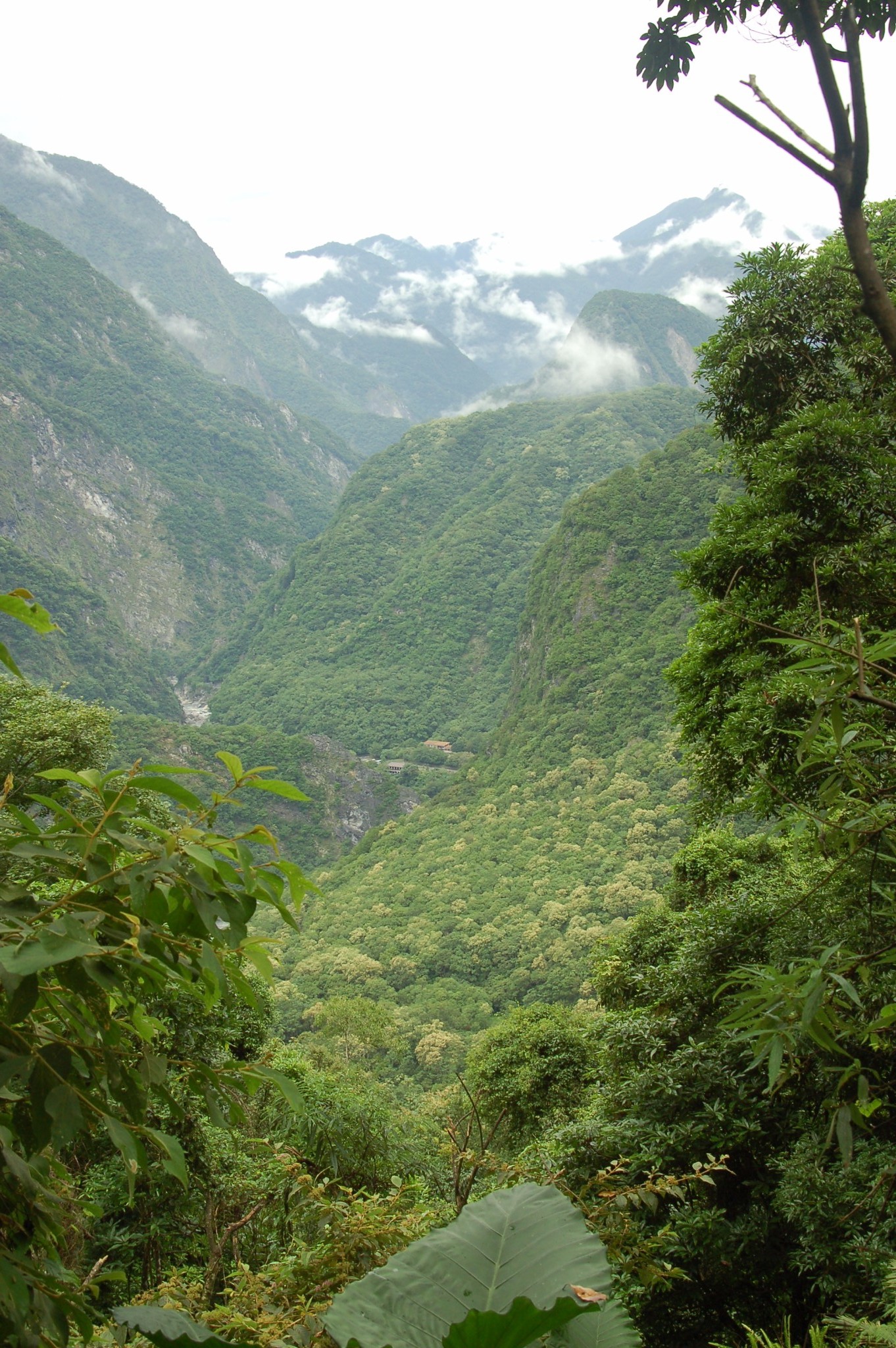 下為切割太魯閣峽谷的立霧溪。後端為去天祥的柏油路。