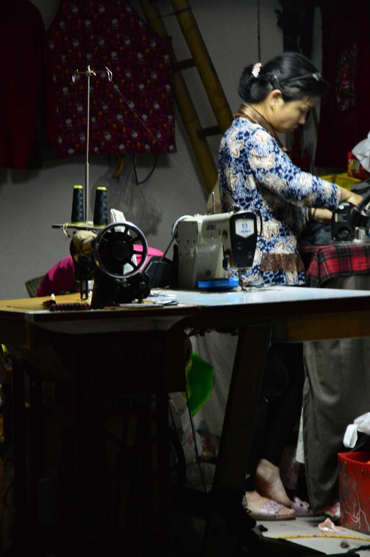 晚上11点,一个门缝里的缝衣妇女