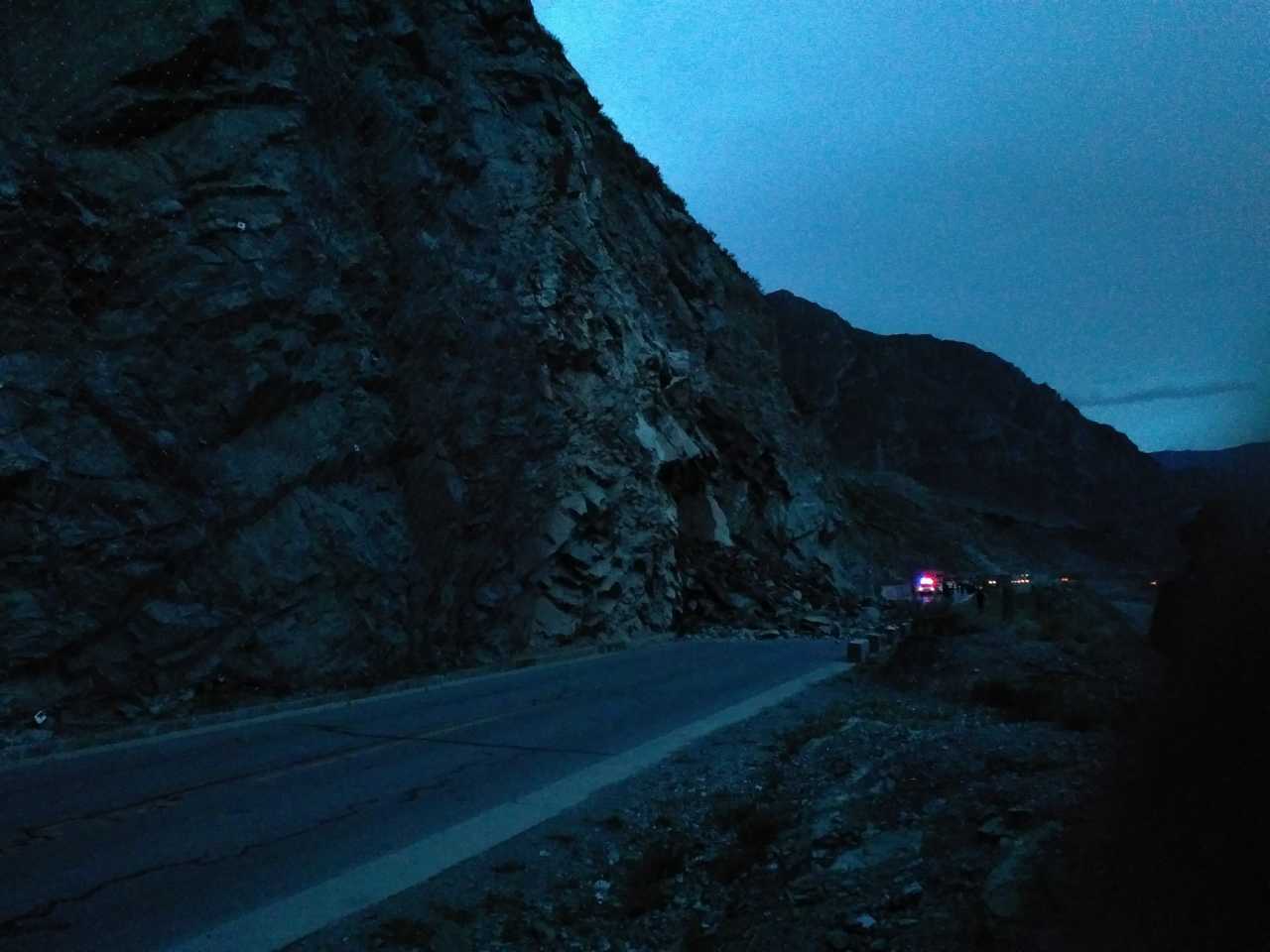 刚从拉萨市出来,就遇到了塌方,把前方的路都堵了,吹着冷风等待救援