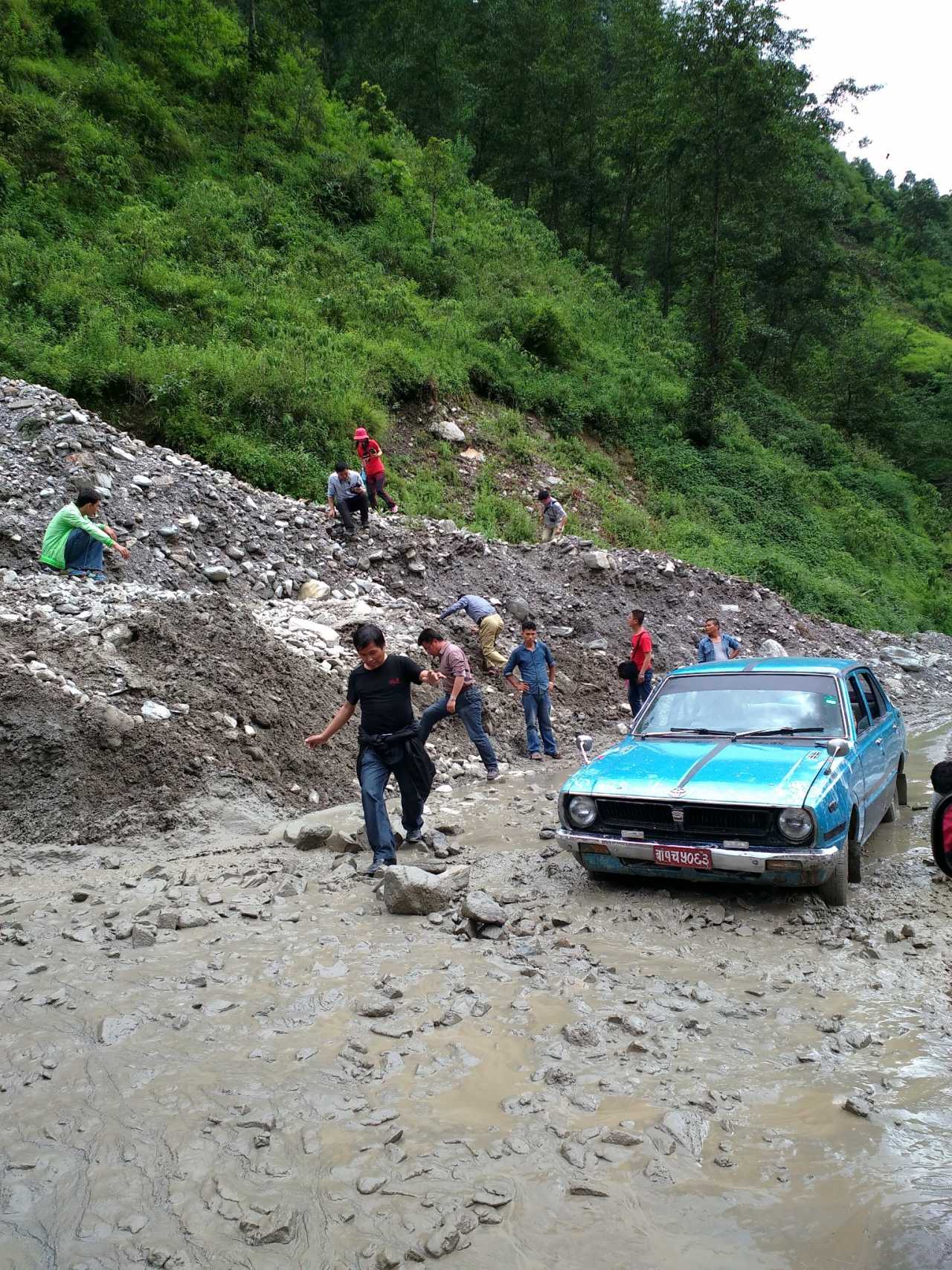 又是泥石流引起的道路中断,堵了一个小时