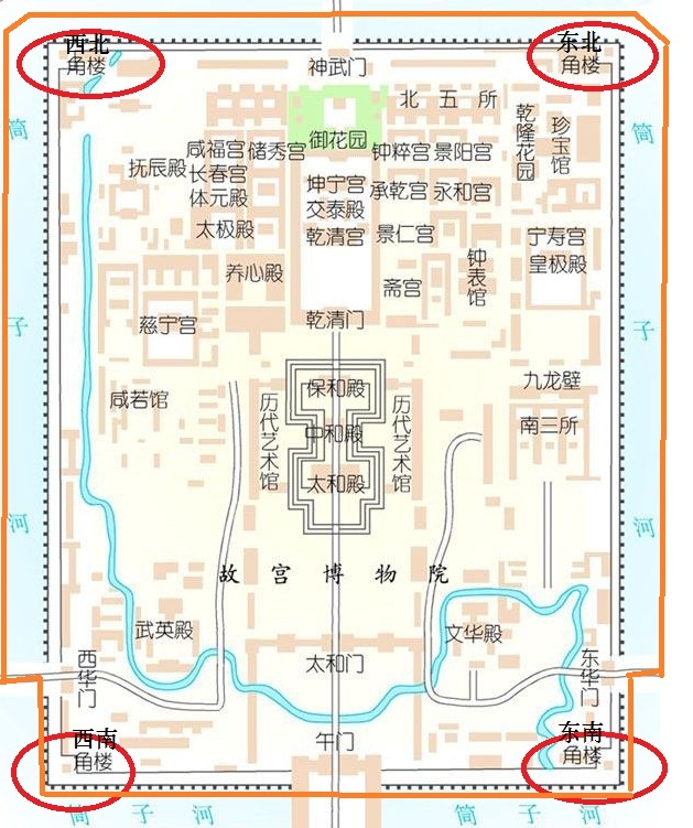 。如果想拍角楼和倒影的话建议视光照情况选择西北角楼,想把角楼和景山拍到一起的可以选择东北角楼。西北和东北角楼都是无法走到角楼下面的,角楼直接临着河。