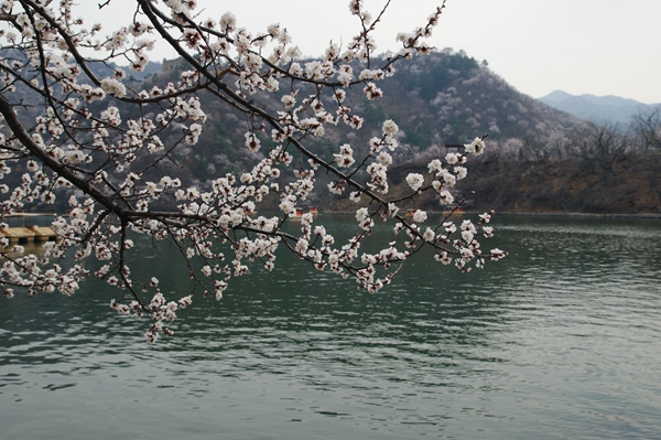 水长城物杰地灵,桃花也有了灵气,深谙“杏花宜在山坞赏,桃花应在水边看”的道理,竞相在水旁岸边开放。娇姿媚影恋春波,盈盈碧水映桃花,花光水影,娇艳欲滴。“夹岸桃花蘸水开”的美景在这里得到了最佳诠释。盛开的花蕊宛如临水梳妆的美丽少女,楚楚动人,令人心醉。