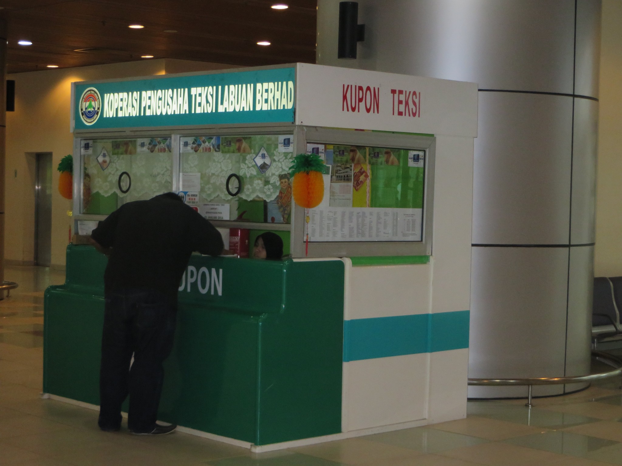 Labuan机场到市区只有出租车,出租车实行的是柜台售票制。告诉这个柜台里的马来姑凉,她会帮你设计一条堪称完美的路线。最主要的是让你一次把钱付清