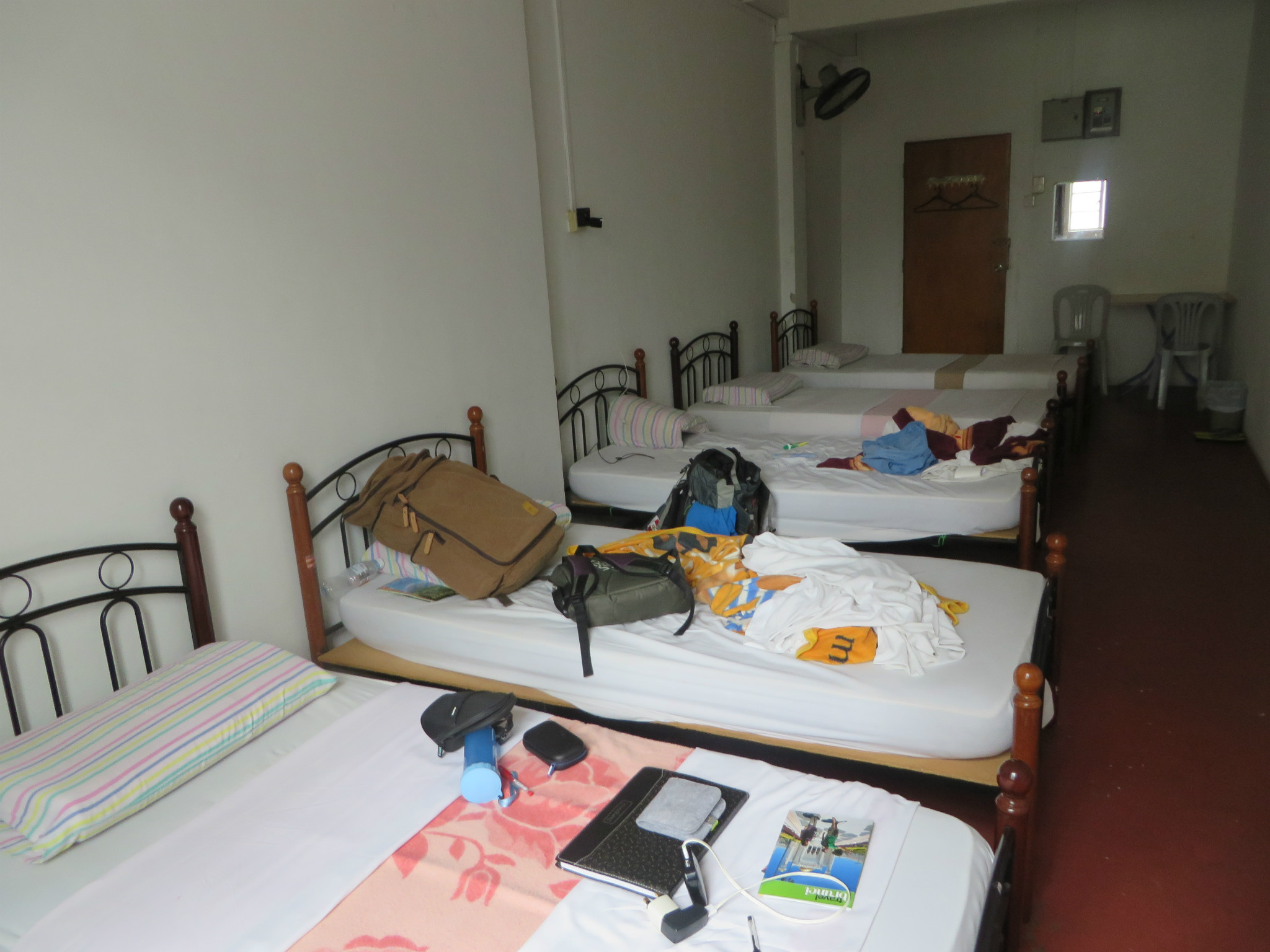 运气好可以碰到讲华语的老板,旅社二楼是一个附属的旅行社能拿到免费的地图以及一些相关的小册子,还可以报名参加他们组织的雨林游。旅社环境一般,单行客可选择集体宿舍5人间,卫生间和淋浴室是大家公用的,很简陋。也有双人间,但住宿条件都很一般。*如果实在找不到,可以看一下街上什么地方有面加拿大的国旗,沿着有国旗那一条街走很容易就找到了。后来还有去过,加拿大国旗依旧还在的。