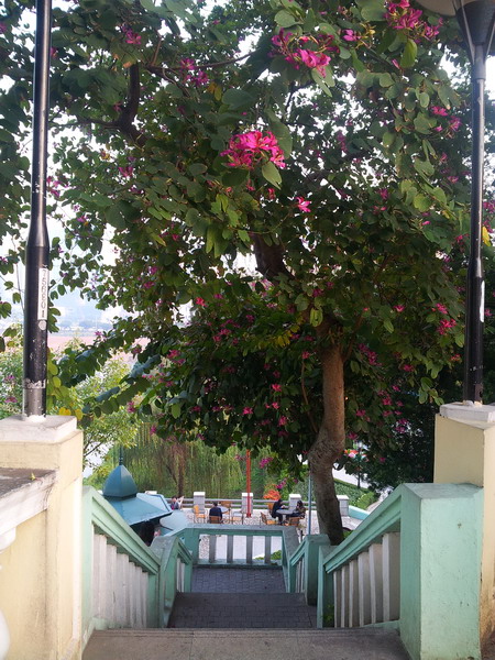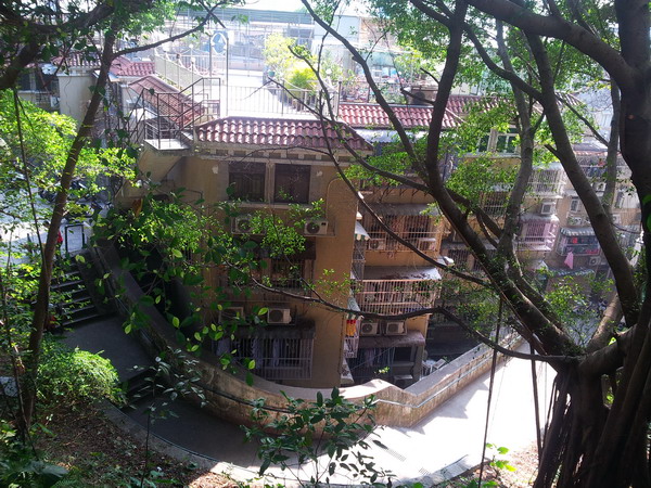 离开六记,穿梭于鱼鳞巷鱼钓巷各种小巷之间,看见土地庙,土地庙边上有很窄的台阶,上去,别有洞天,里面是白鸽巢公园。
