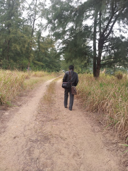 沿着江边,走去公车站,今天要去黑沙滩。