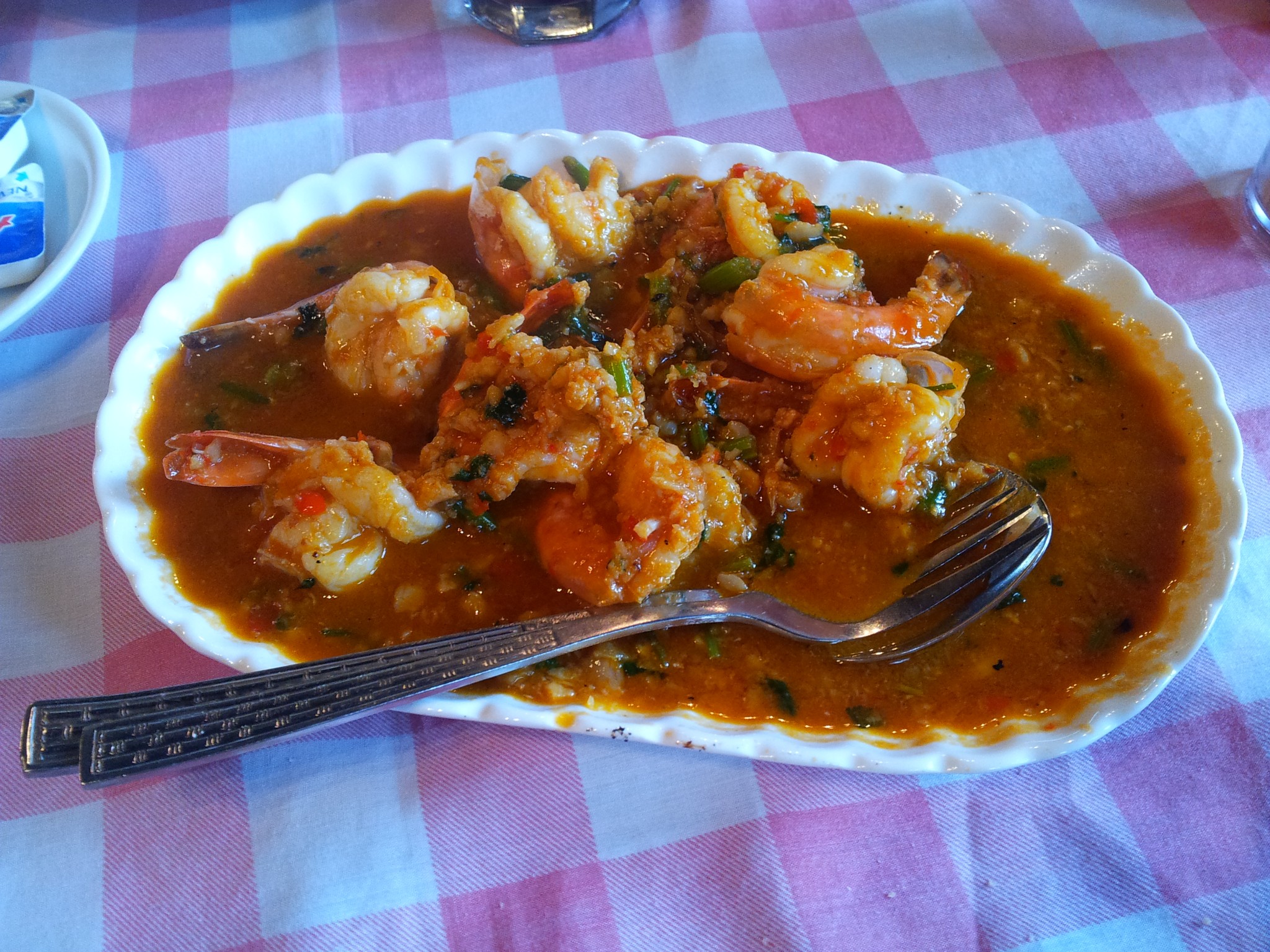 蚬汁炒虾,汤水味道极赞,蘸着面包吃极美味。