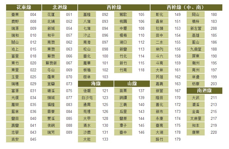 台铁查询网站:www.railway.gov.tw(需要翻墙),可以查询车次、时间、站点号码等。不会翻墙的也可以用这个网页来查询:http://taitie.taiwandao.tw/。