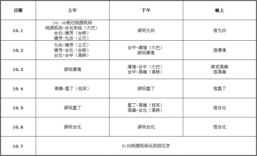 最后定下了台北、九份、清境、垦丁四个地标,虽然还是觉得时间有点赶,但是也没办法啦。