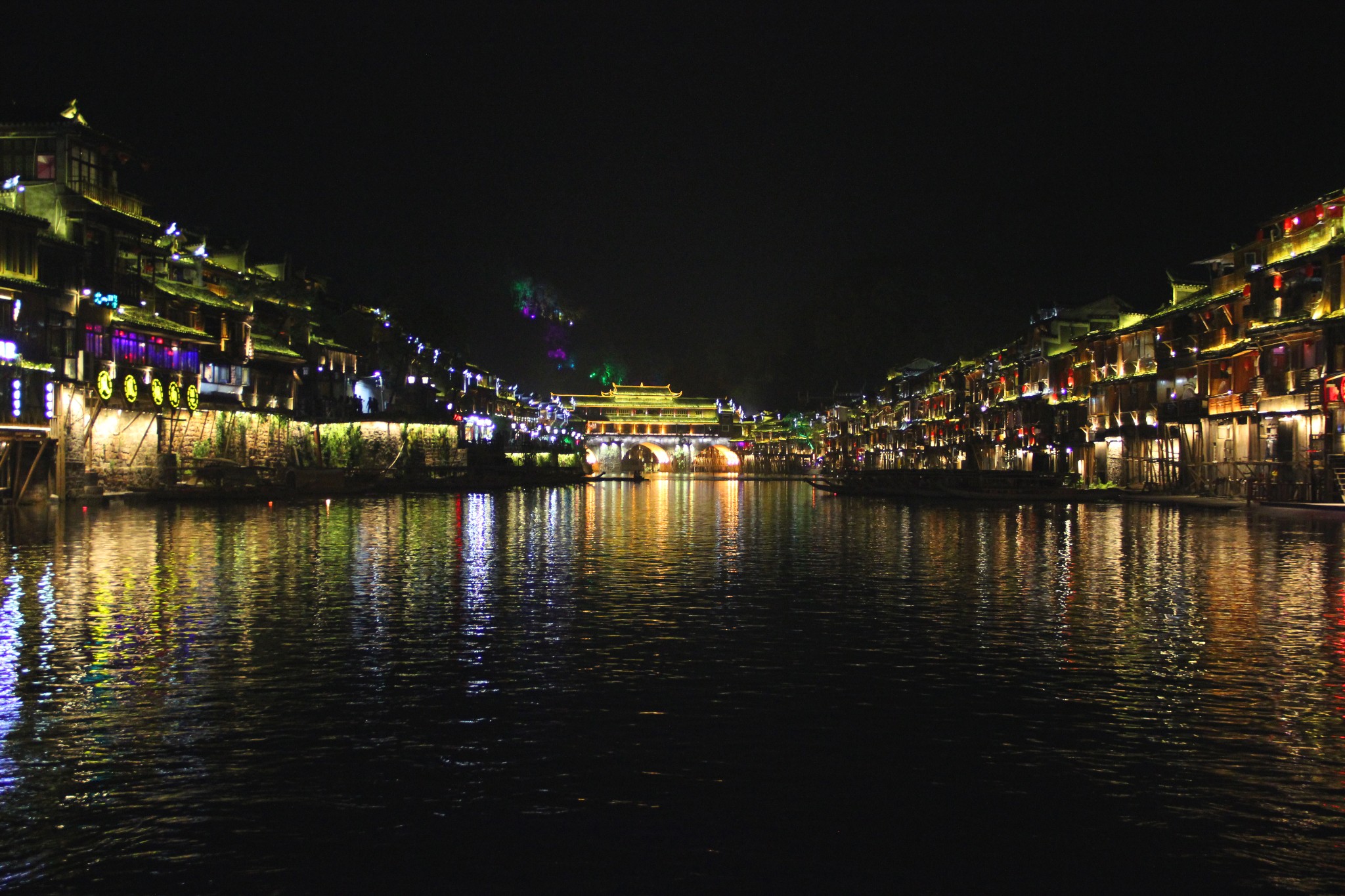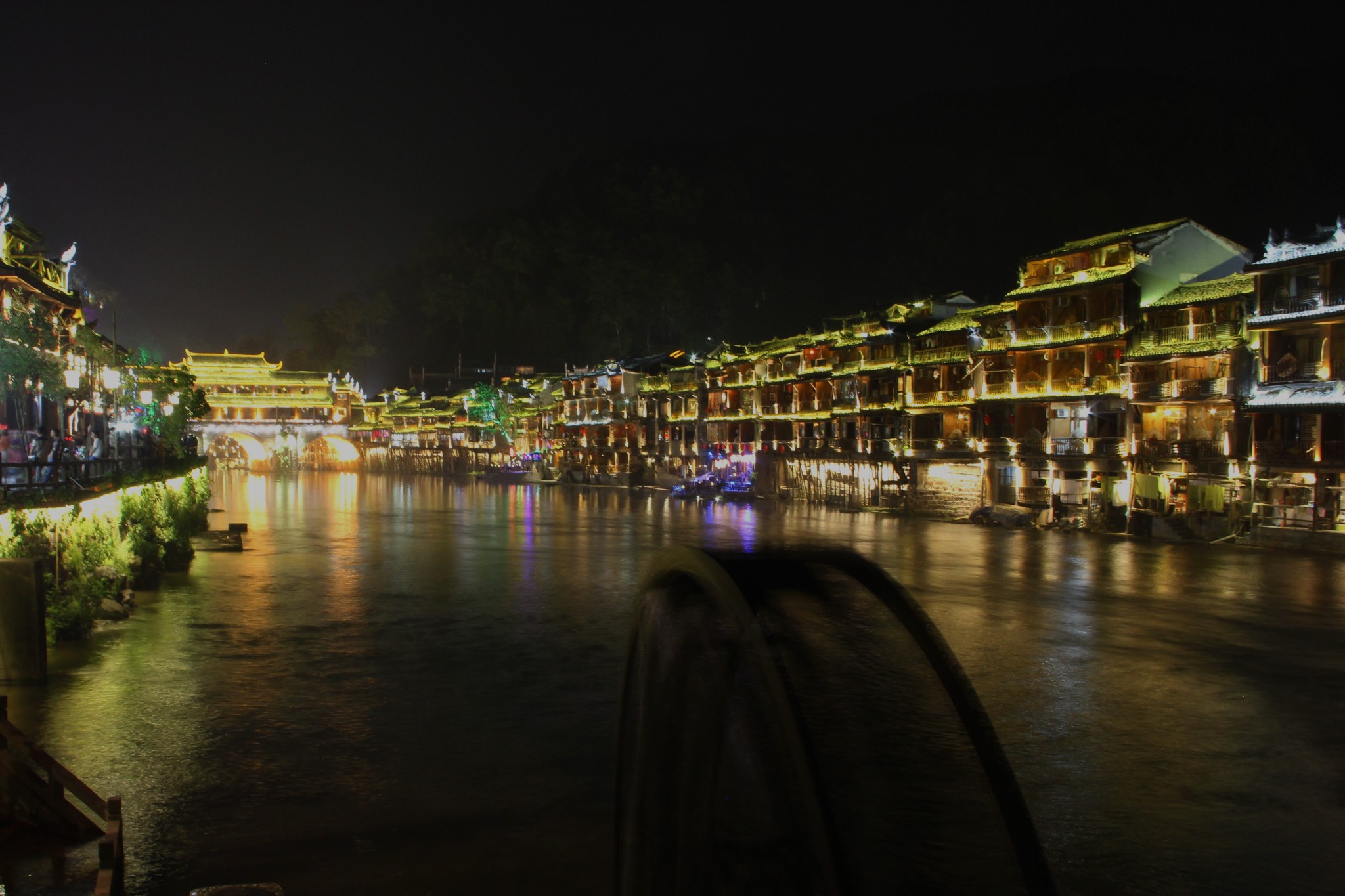 我们到凤凰已经是晚上8点多了,联系酒店,他们派人来下车点接我们,穿的是湘西当地少数民族的服装,很美。我们买的是学生票20元,成人135,建议如果不是学生的话可以提早定好城内酒店,并联系酒店,这样就可以省下门票钱了。进入古城之后,真的是瞬间被迷倒的感觉,灯光效果很美很美,特别小清新,完全是人间仙境的感觉。